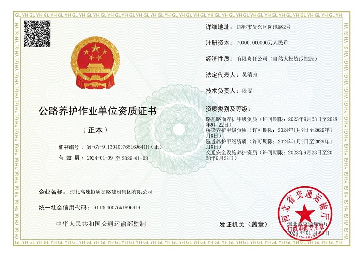 河北高速恒質(zhì)公路建設(shè)集團(tuán)有限公司始建于2004年,前身是邯鄲市恒質(zhì)公路建設(shè)集團(tuán)有限公司。2024年7月成為河北高速公路集團(tuán)有限公司二級子公司,現(xiàn)有職工500余人,下轄18家子公司13個分公司,參股公司3家 ,注冊資本7億元,是一家集公路工程施工、路用材料研發(fā)生產(chǎn)、試驗(yàn)檢測、瀝青貿(mào)易、公鐵物流于一體的多元化、綜合性單位,國家級高新技術(shù)企業(yè),河北省專精特新中小企業(yè),河北省首家瀝青拌合環(huán)保引領(lǐng)性企業(yè)。公司擁有公路工程總承包壹級、公路交通工程(公路安全設(shè)施)專業(yè)承包壹級、機(jī)電工程施工總承包貳級、電力工程施工總承包貳級、市政公用工程施工總承包貳級、建筑工...
